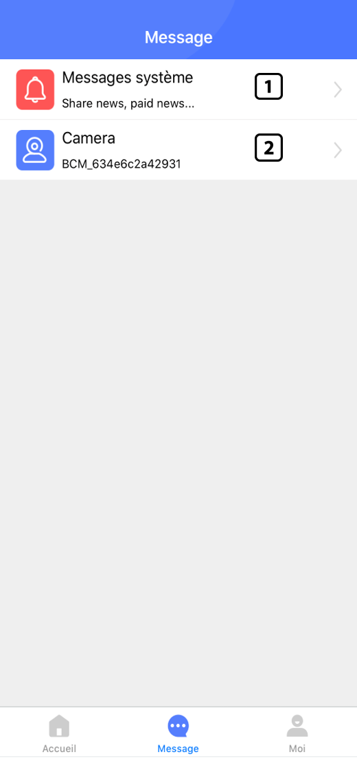 1- « Messages système »Vous avez accès aux partages des appareils, il vous suffit d’accepter l’invitation de partage pour avoir accès à la caméra partagée par un autre utilisateur.