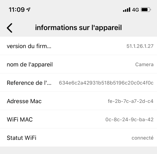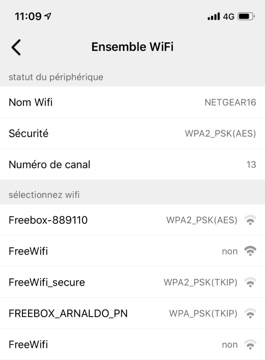 Ici vous pouvez visualiser le réseau Wi-Fi auquel votre caméra est connectée ainsi que les autres réseaux Wi-Fi environnant.