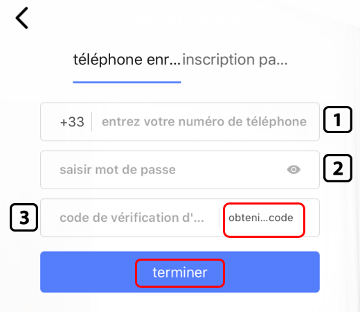 Cliquer sur « mot de passe oublié » puis créer un nouveau mot de passe et cliquer sur « obtenir un code de vérification » qui vous sera envoyer sur votre numéro ou sur votre email selon le choix que vous aurez fait pour l’identifiant.