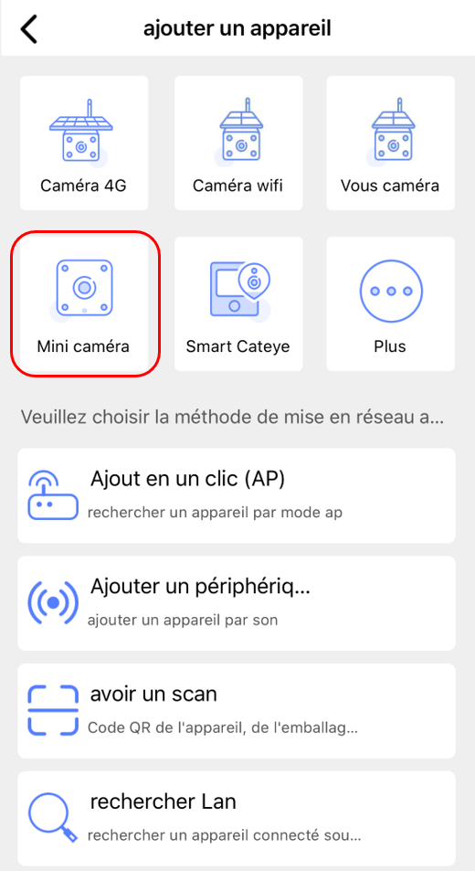 9. Sélectionnez « Mini caméra »