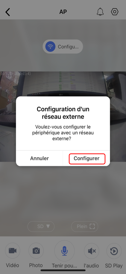 L’interface de l’application : Accéder à la vision en temps réel de la caméra > SD Play