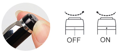 Placez le commutateur (au niveau de la prise USB) sur le tiret ( – ), puis tournez la tête du stylo sur le cote noir l’enregistrement en mode continu est lancé.