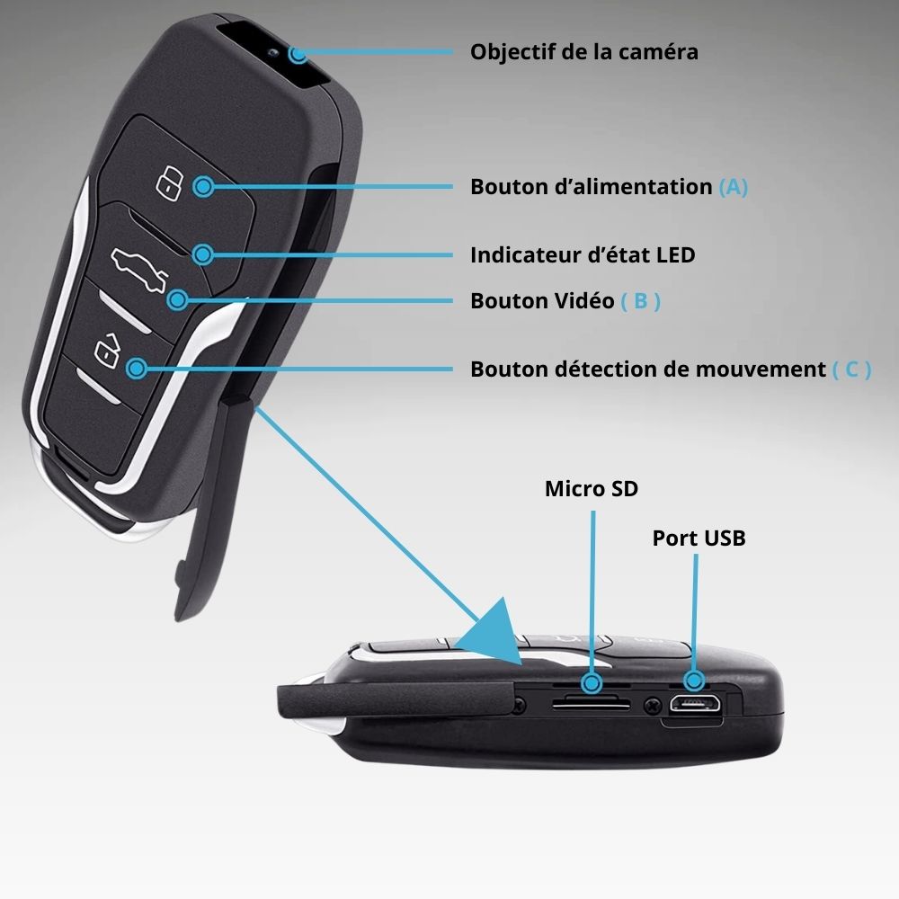 - LED bleu éteinte : Enregistrement vidéo en cours.