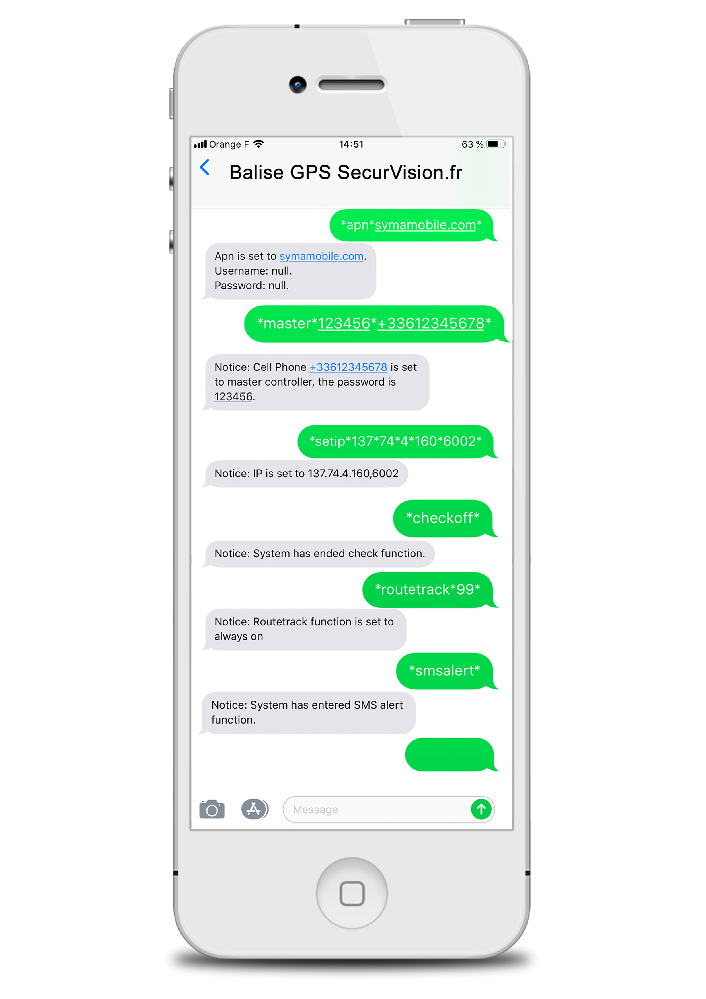 - Envoyer par SMS au numéro du traceur GPS la commande suivant l’opérateur de la carte SIM :