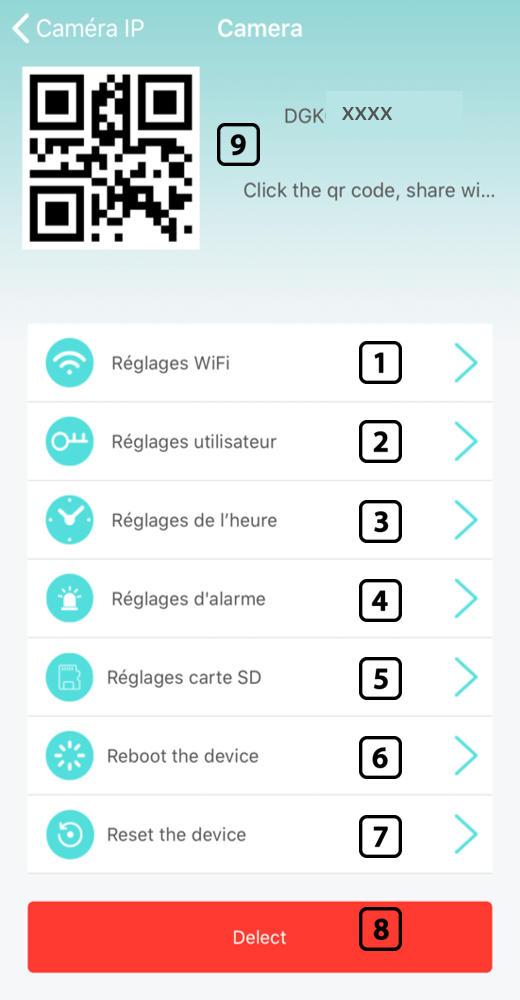 | 000# | Désactiver l’alerte par appel sur détection de bruit |