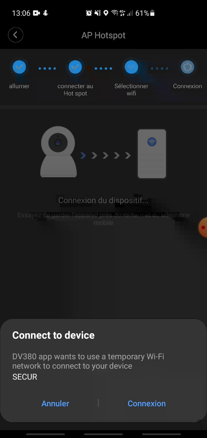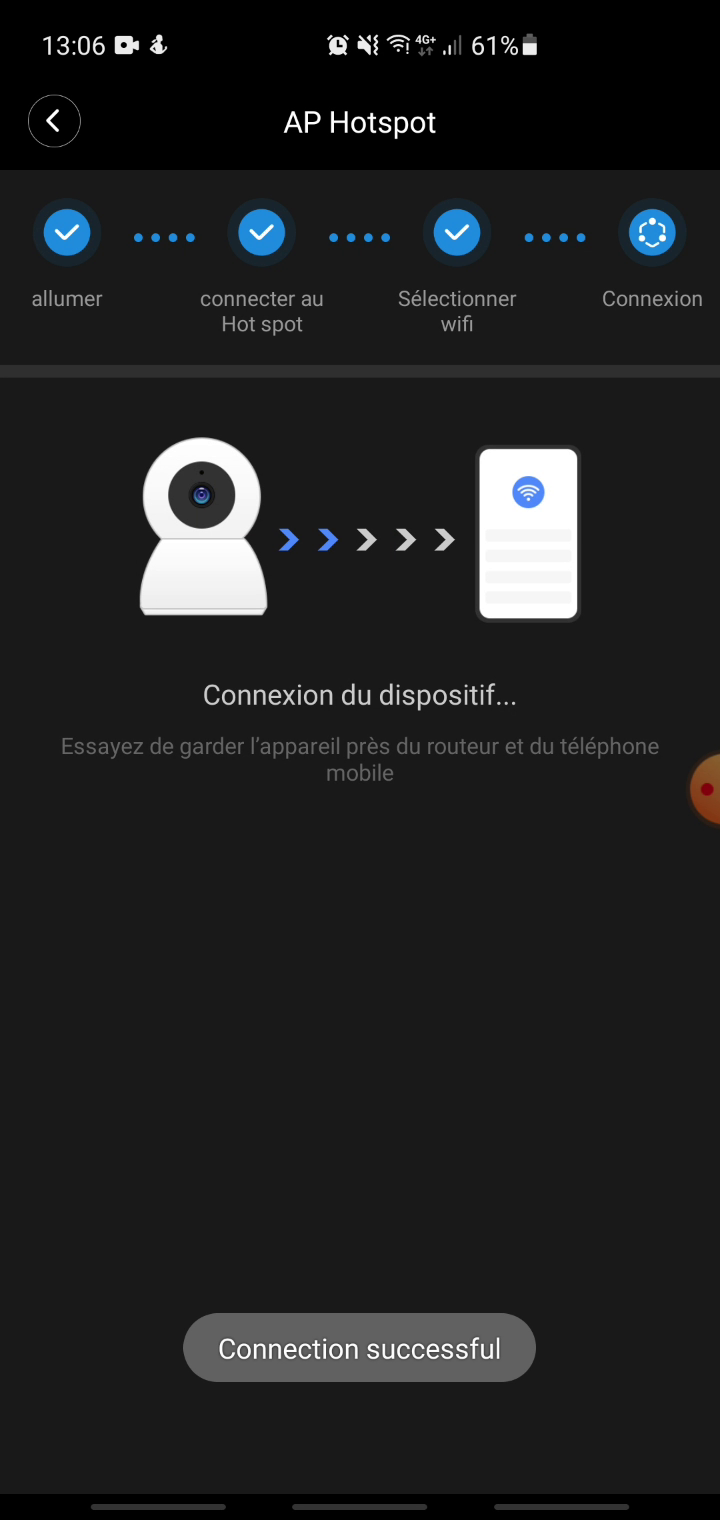 1- Vous êtes en train de connecté la caméra au réseau WiFi Box , donc les voyants vont passés au fixe une fois connecté.