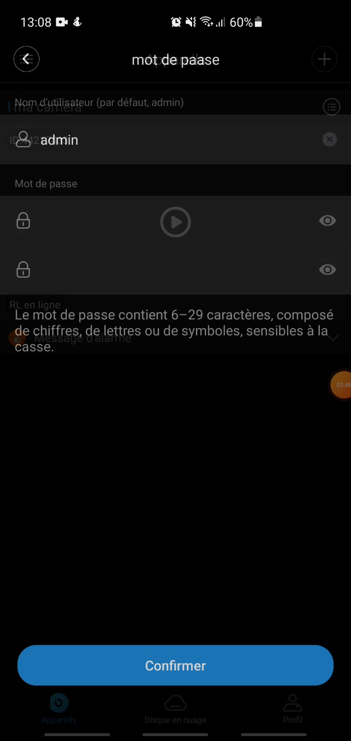 4) Essayez d’ajouter la caméra sur un autre téléphone connecté, pour cela vous pouvez partager la caméra à un destinataire disposant d’un compte sur l’application.