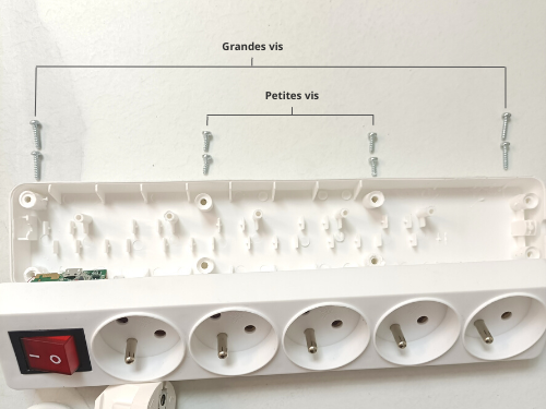 Commencez par dévisser les vis un à un. Faites bien attention, les vis des deux extrémités de la multiprise sont plus longues que les vis du milieu.