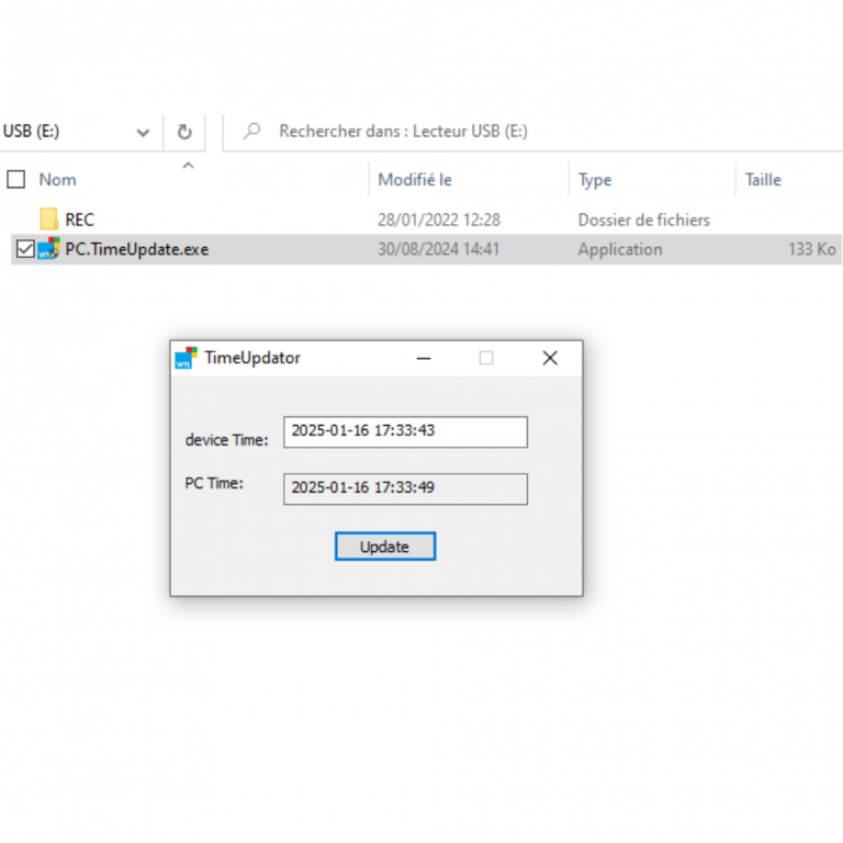 Le fichier « PC.TimeUpdate.exe » vous permettra de régler la date et l’heure de vos enregistrements.