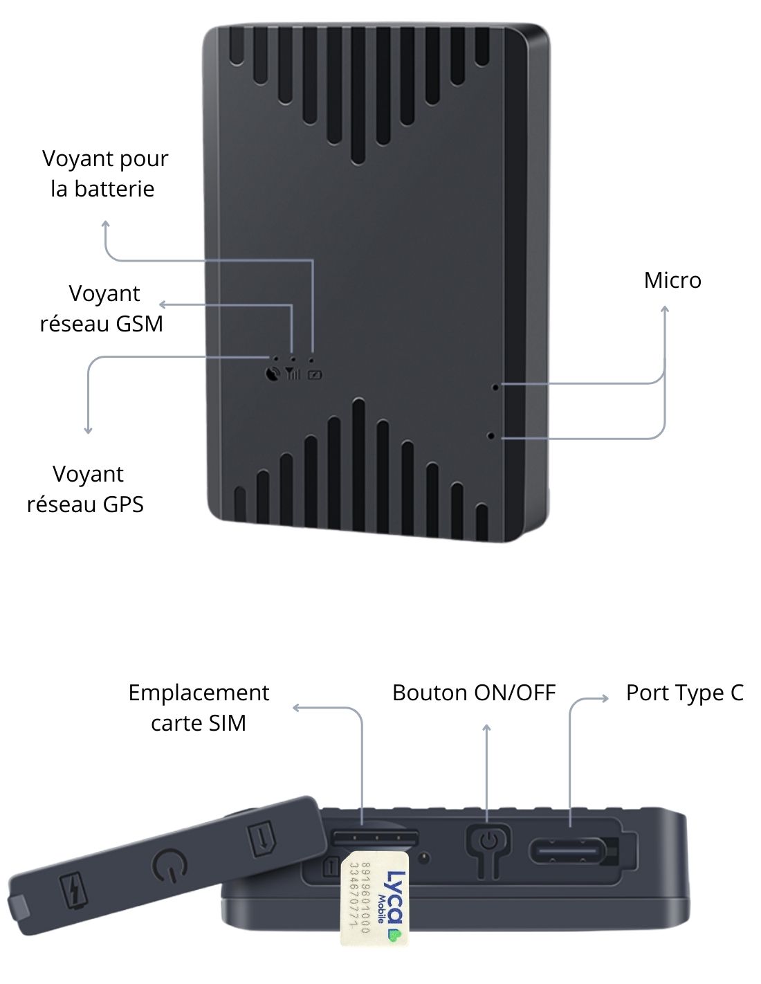 2- Lorsque vous insèrerez la SIM dans votre GPS, les voyants orange et bleu doivent être fixent. Cela indique que votre appareil est bien connecté au réseau.